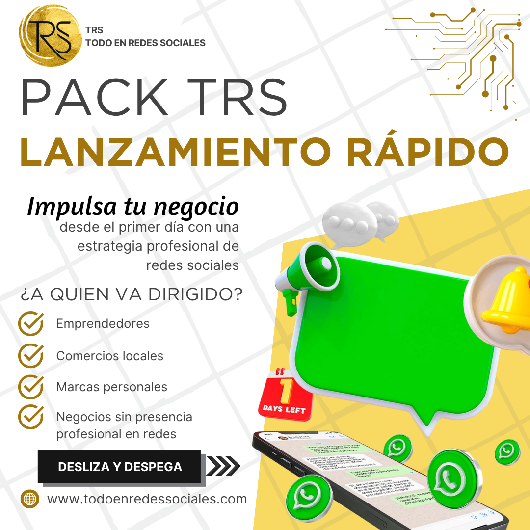 Aquí tienes la información completa del Pack TRS: Lanzamiento Rápido que te ayudará a dar el primer gran paso en redes sociales sin perder tiempo ni dinero.